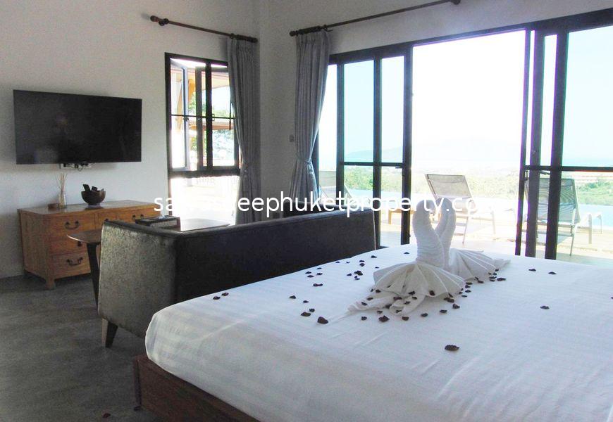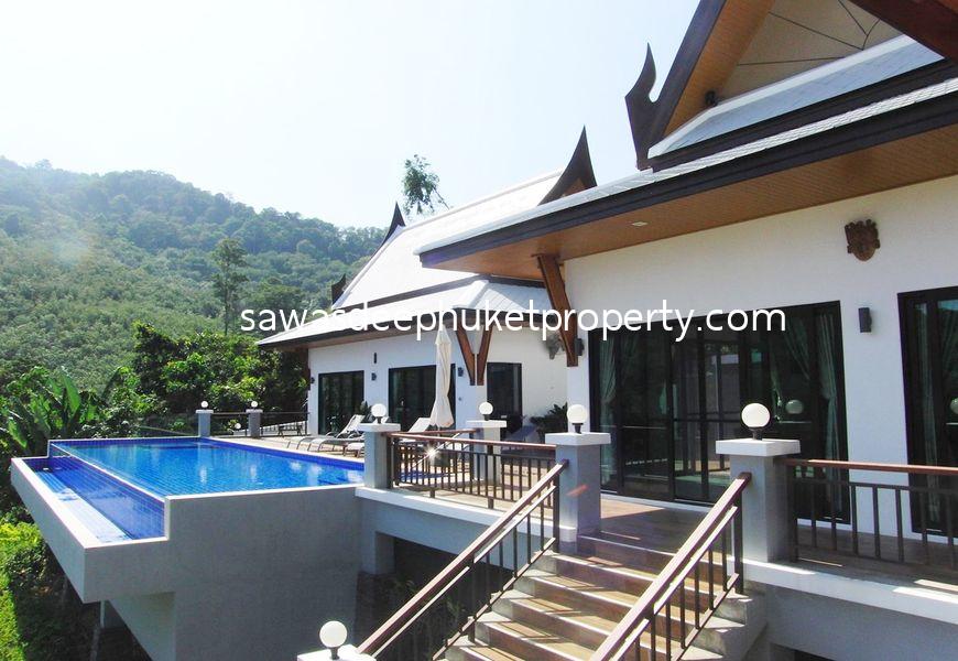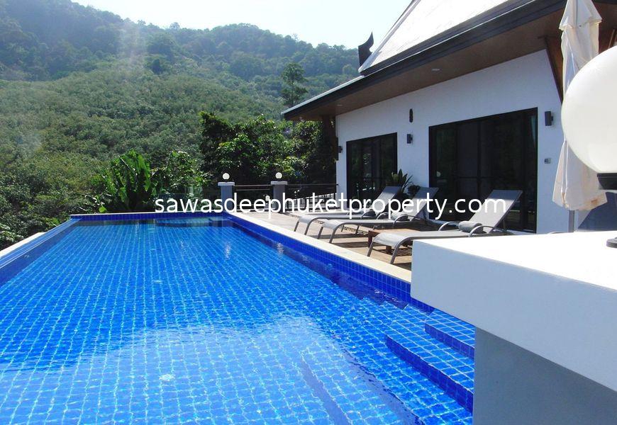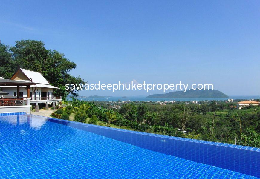 This sea view pool villa in Rawai sits on a hillside with amazing ocean views and mountain views. It is the perfect spot for a private, luxurious, and laid-back lifestyle.