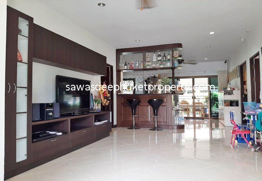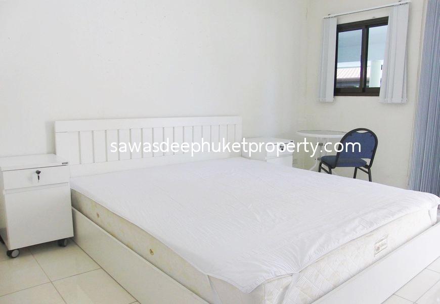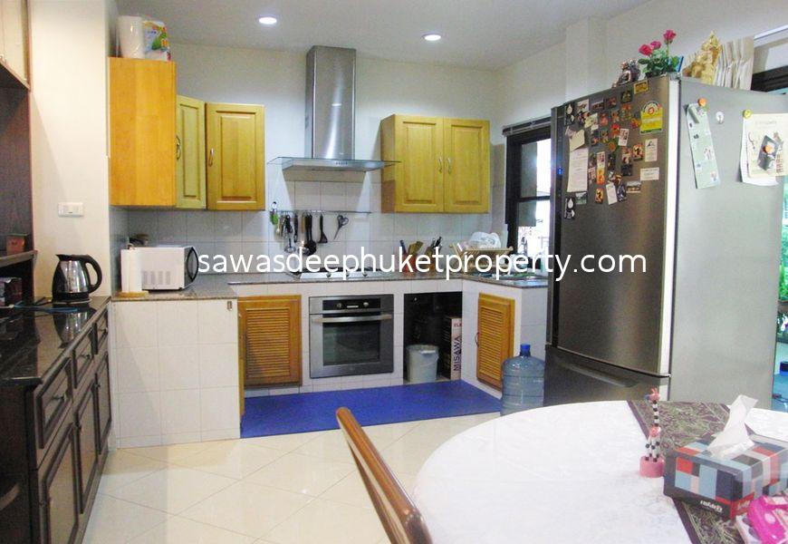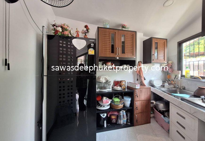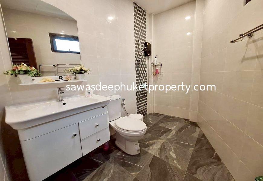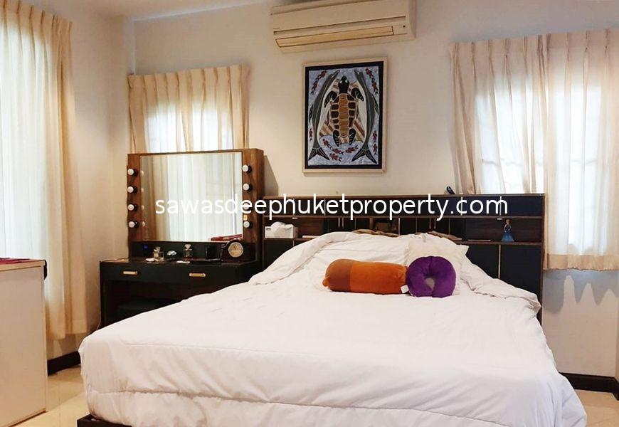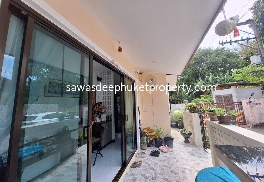 This corner property features three separate buildings. The main house includes two ensuite bedrooms. At the center of the land plot is a second building with three bedrooms, ideal for a rental business. The rental rooms are always booked.