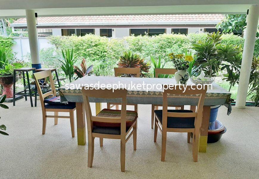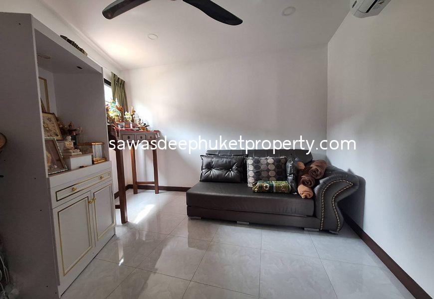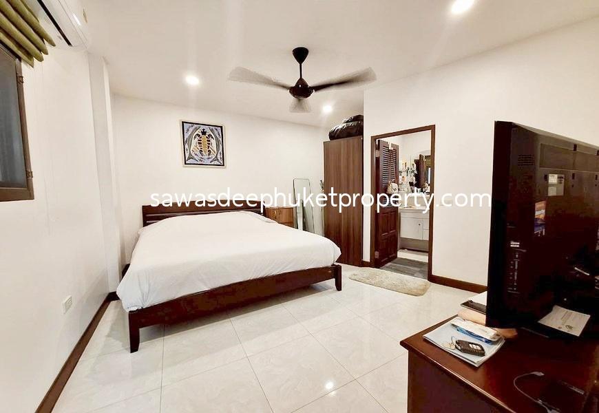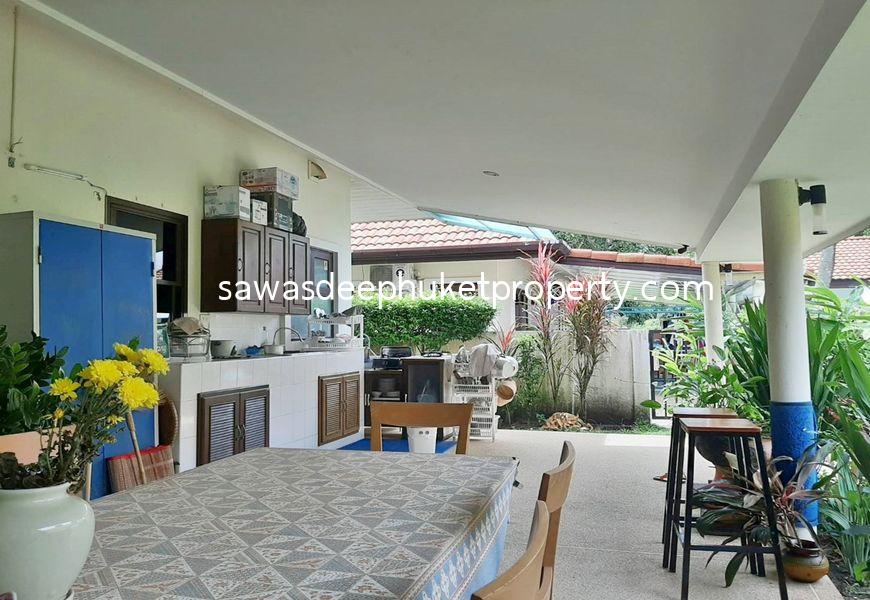 This corner property features three separate buildings. The main house includes two ensuite bedrooms. At the center of the land plot is a second building with three bedrooms, ideal for a rental business. The rental rooms are always booked.